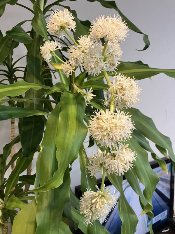 高校の同級生からLINEで送られて来た『幸福の木』花が咲いたそうで、縁起が良いのでアップ致します。