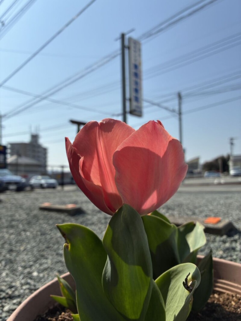 心地よい春風の中、チューリップが開きました。